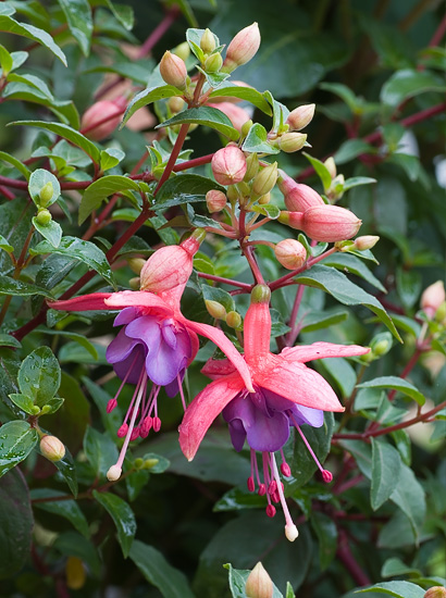 Diese niedrig bleibende Fuchsie ist sehr gut zur Beetbepflanzung geeignet. Sie ist extremreichblütig, und die Blüten werden gut sichtbar über dem Lauf getragen. 'Ringwood Market' ist aber auch mit ihrem überhängenden Wuchs als Topf- und Ampelfuchsie sehr gut zu verwenden. Mit ihrer dichten und kurztriebigen Verzweigung füllt sie schon bald mit 3 Pflanzen eine 25-cm-Ampel aus. Viele mittelgroße hängende Blüten über dunklem Laub machen diese Ampel dann zu einem Blickfang. Die Blüte ist relativ früh. Ein Fußstämmchen dieser Sorte war bei uns eine Augenweide. Für 'Ringwood Market' ist gefiltertes Licht optimal. Ringwood ist ein Ort im Süden von England, südwestliche von Southampton.