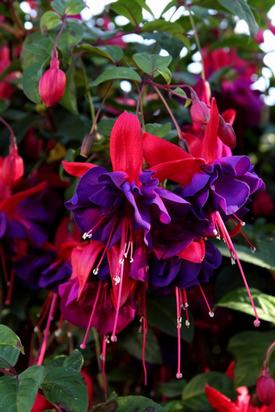 Unter den zahlreichen Fuchsiensorten mit rot-blauen Blüten nimmt 'Royal Velvet' zu Recht eine Sonderstellung ein. Diewohlgeformten,großen Blüten mit dem lackroten Kelch und dem intensiven Purpurblau der Korolle öffnen sich weit und enthüllen so ein samtigrotes Innenleben. Auch die langen Staubfäden mit dem extrem langen Stempel tragen zu diesem verfeinerten,sehr ansprechenden Eindruck bei. Das feste Laub ist groß und fast ganzrandig mit roten Blattnerven und roten Blattstielen. Wie viele wirklich gute Fuchsien ist 'Royal Velvet' vielseitig verwendbar. Ob im Balkonkasten,in größeren Containern oder als Hochstamm,sie macht immer großen Eindruck und erfreut durch eine lange Blütezeit. Die Anzahl der Blüten kann durch frühes Entspitzen deutlich gesteigert werden.