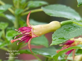Tarra Valley' ist eine kleinbleibende, strauchartige Fuchsie, die im Nahbereich optimal steht, denn die Blüten wirken eher unscheinbar mit dem dunklen Laub. Bei mir stand sie immer im Halbschatten was ihr bisher gut bekam. Die Überwinterung war ebenfalls problemlos.