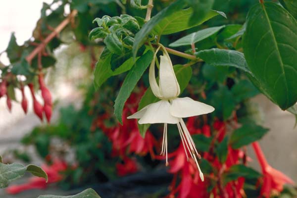 Ting-a-Ling' ist zweifellos eine der besten aufrechtwachsenden, einfachblühenden weißen Fuchsien. Die wohlgeformten, zahlreichen, gut über dem Laub stehenden Blüten machen dieses Cultivar zu einem vorzüglichen Schauobjekt. Die gute Verzweigung bei kurzen Internodien und der dadurch bedingte buschige Wuchs bringen es aber mit sich, dass bei mangelnder Aufmerksamkeit im Winter oder Frühling - selbst in regenreichen Sommern- schnell Botrytis sich ausbreitet. Die meisten weißen oder pastellfarbenen Fuchsien sind anfällig für diesen Pilz. Also heißt es wachsam sein und solche Pflanzen am besten vorbeugend mit einem Fungizid behandeln. Der starke Wuchs und die vielen Blüten setzen regelmäßige, ausreichende Düngung voraus. Vernachlässigt man diesen Punkt, werden die Blätter bald chlorotisch und fallen ab. Was generell für weiße Fuchsien gilt, ein möglichst schattiger, geschützter Standort, ist für 'Ting-a-Ling' ein absolutes Muss, weil die Substanz der Blüten nicht besonders fest ist und Wassertropfen leicht braune Flecken hinterlassen, die die Schönheit doch sehr beeinträchtigen. Ganz problemlos ist die Kultur also nicht. Wenn man sie aber mit den beschriebenen Methoden in den Griff bekommt, wird der Erfolg nicht ausbleiben. Eine extrem lange, pausenlose Blütezeit ist der Lohn unserer Mühe. Clement Schnabel gehörte zu der ersten Generation erfolgreicher Fuchsienzüchter in Kalifornien. Seit 1947 wurde von ihm 59 neue Sorten eingeführt, darunter so bekannte wie: 'Sleigh Bells','Impudence', 'Constellation' und 'Cara Mia'. Ted Paskesen war zunächst sein Mitarbeiter. Es sind von ihm aber auch 21 neue Sorten bei der AFS registriert.