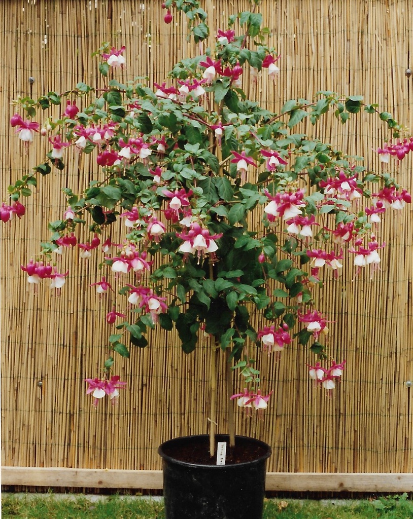 Fuchsien mit rotem Kelch und weißer Korolle sind zahlreich. Die Bandbreite reicht von den kleinblütigen wie 'Cardinal Farges',' White Pixie' und 'Nelly Nuttal' über die im Gartenbau viel verwendeten Sorten 'Hanna', 'Snowcap' oder 'Schneewittchen', bis zu den großblütigen 'Swingtime', 'Red Ribbons' oder gar 'Texas Longhorn' mit ihren Riesenblüten. Sie alle beeindrucken durch den klaren - auch in die Ferne wirkenden - leuchtenden Farbkontrast und sind darum verständlicherweise allgemein beliebt. 'Tolling Bell' hat eine besonders schöngeformte, längliche Glockenblüte, die vor dem eher kleinen Laub gut zur Geltung kommt. Der Name ist vom Züchter wirklich treffend gewählt worden. Der aufrechte starke Wuchs macht ein mehrmaliges Entspitzen im Frühjahr erforderlich. Die Pflanze reagiert prompt und zuverlässig darauf und treibt aus jedem schlafenden Auge einen weiteren Zweig. 6 bis 8 Wochen später können wir dann viele "läutende Glocken" erwarten. Eine Blühpause ist bei guter Ernährung nicht zu befürchten. Prachtvolle, sehr dekorative Büsche und Hochstämme lassen sich ziehen. Ein Punkt ist bei der Auspflanzung allerdings unbedingt zu beachten: 'Tolling Bell' liebt die pralle, heiße Sonne gar nicht. Es empfiehlt sich, ihr einen hellen, kühlen Platz auszusuchen. In England ist vor einigen Jahren eine Mutation mit schön panaschierten, grüngoldenen Blättern entstanden, die 1985 unter der Nr. 1920 bei der AFS registriert wurde.