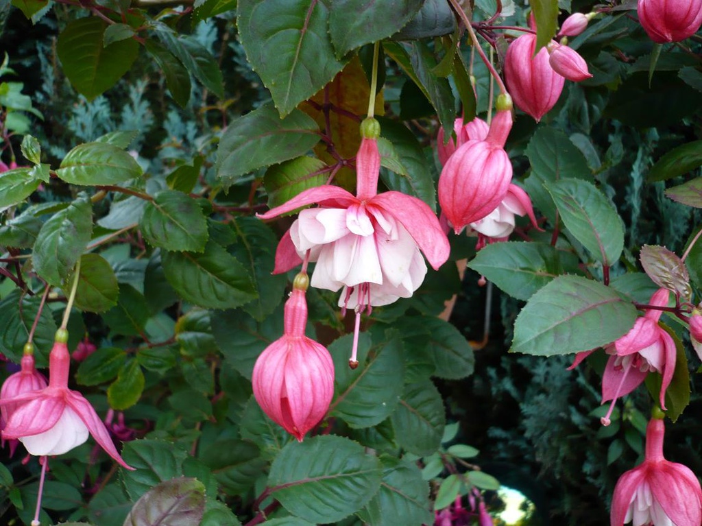 Die Vikar Mraz blüht ohne Blühpause,wächst leicht aufrecht und die Blüten sind gefüllt.Seit einigen Jahren habe ich diese Fuchsie. Sie erstaunt mich immer wieder wie problemlos sie ist. Sie bekommt keinen Rost,braucht wenig Pflege und gedeiht wunderbar im Halbschatten wie auch in der Sonne. Sie hat fast ins bräunlich/rot gefärbte Blätter. Die Blüten sind im schönen Kontrast. Die gesamte Pflanze fällt im üblichen Sortiment auf!