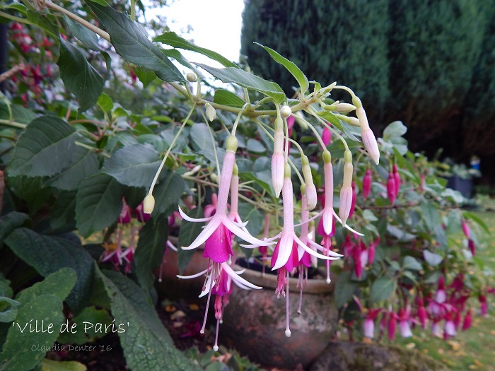 Diese Fuchsie wirkt zart und elegant. Sie verzweigt sich gut, wächst aber eher in die Breite als in die Höhe. Obwohl sie nicht als Hänger deklariert ist, ist sie auch für eine Ampel geeignet. Sie blüht ohne Unterlass und lässt sich gut überwintern. Eine Vermehrung durch Stecklinge ist mir bisher nicht gelungen.