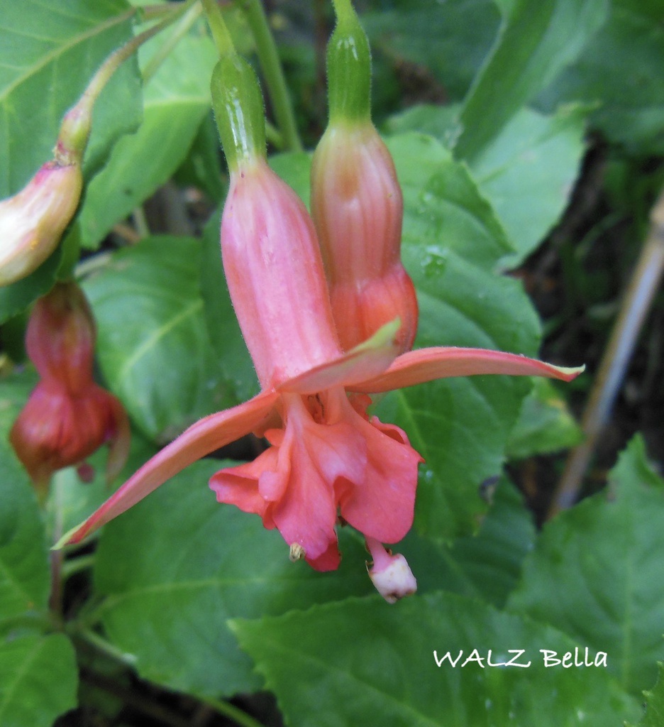 Diese aufrechte Fuchsie wächst sehr gut und kräftig. Sie verzweigt sich sehr gut von allein und ein einmaliges Entspitzen dieser Sorte im Frühjahr reicht meist schon aus, um einen schönen dichten und kompakten Wuchs zu erzielen. Große Blühpausen scheint 'WALZ Bella' auch nicht zu kennen und so blüht sie den ganzen Sommer unermüdlich durch. Ein sonnigeres Plätzchen bekommt nicht nur der Blütenbildung gut, sondern auch der Blütenfarbe. Je sonniger diese Sorte steht, um so intensiver orange sind die Blüten ausgefärbt, welche eine wunderbare Leuchtkraft in der Dämmerung besitzen. Die Stecklingsvermehrung ist recht unkompliziert. Kopfstecklinge bilden sehr schnell Wurzeln und haben eine gute Wuchskraft. Bei der Überwinterung sollte 'WALZ Bella' etwas trockener gehalten werden, ist aber sehr gut zu überwintern.