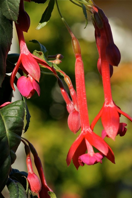Petalen sind ziemlich klein und hängen an einem Stiel, magentarot