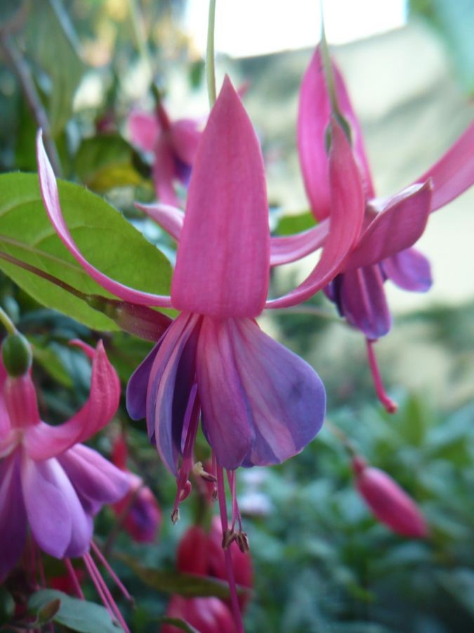 Die 'Wastl' wächst recht schnell zu einem reichblühenden Busch heran. Die Zweige sollten oft entspitzt werden damit sie etwas kompakter wird. Trotzdem bleibt der Aufbau etwas locker. Die Blüten sind in herrlich frischen Farben. Die Sepalen öffnen sich ganz und deren Pink setzt sich als Farbtupfer in den lilafarbenen Petalen/Korolle fort. Zum Verblühen hin öffnet sich auch die Korolle ganz weit,so das die Staubfäden deutlich herausragen. 'Wastl' ist eine reichblühende,problemlose Fuchsie. Sehr empfehlenswert für den halbschattigen Standort. Bisher bei mir nicht anfällig für Krankheiten.