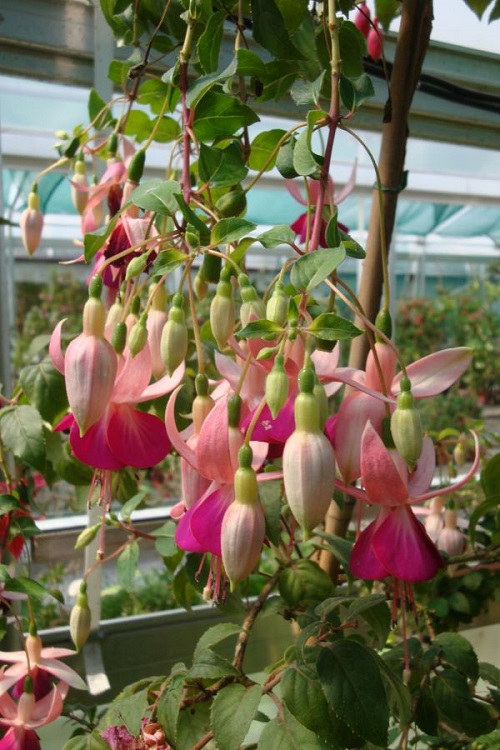 Seiner Mutter,Zilda Catherine Friob,hat der belgische Fuchsienzüchter Victoire Murru diese Fuchsie gewidmet. Ich kann mir vorstellen,dass man aus dieser Sorte so ziemlich alles heranziehen kann,seien es Büsche,Ampeln oder auch Hochstämmchen. 'Zilda Catherine Friob' wird es,egal in welche Form man sie bringt,mit reichemBlütenflor belohnen. Eine problemlose Fuchsie,die wie auch auf dem Foto bei dem Bericht über den Züchter auf Seite 8 gut zu erkennen ist,sicher den ganzen Sommer über blüht. Ich finde die Form dieser einfachen Blüte sehr ansprechend,die Internodien sind kurz. Bei dem reich blühenden Busch auf Seite 8 konnte ich feststellen,dass diese Sorte viele Stecklinge mit drei Blättern in der Achsel hervorbringt,was ja bekanntlich zu schön geformten Hochstämmchen führt. Victoire Murru versicherte mir,dass auch die Überwinterung und Vermehrung keine Probleme bringen,und dass dies eine seiner besten Züchtungen ist.