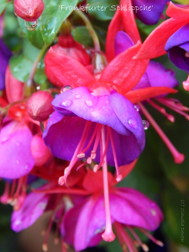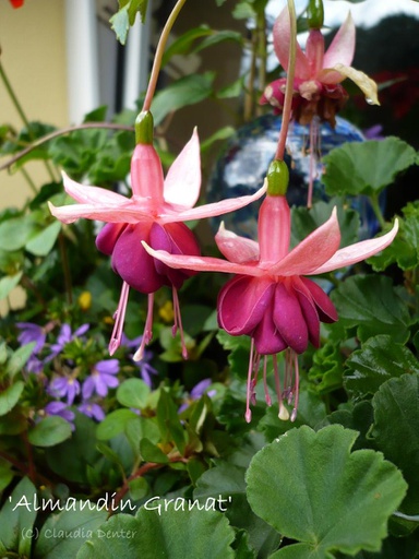 Dass Herr und Frau Neuhäusel sehr aktive Mitglieder in unserer Gesellschaft waren, ist vielen Fuchsienfreunden noch bekannt. Den Weg von K.H. Neuhäusel als Züchter will ich hier nun kurz darstellen: Herr Neuhäusel, von Beruf Zahnarzt, machte sich schon vor Schließung seiner Praxis 1992 Gedanken, was für eine sinnvolle Beschäftigung er sich vorstellen könnte. Er wollte nicht in ein allzu tiefes Loch fallen und begann deshalb schon recht früh, in Anlehnung an das Fuchsienhobby, mit dem Züchten neuer Sorten. Bei der Taufe seiner ersten Züchtung ‘Frankfurter Schlippche‘ auf der BuGa Dortmund 1991 durfte ich persönlich mitwirken. Inzwischen haben sich Neuhäusels sehr erfolgreich an verschiedenen Ausstellungen beteiligt und einige Medaillen für ihre züchterische Arbeit erhalten. Herr und Frau Neuhäusel hatten ihre Fuchsien in einem etwa 250 m² großen Garten, der sich an ihr Wohnhaus mit Pergola anschloßt, aufgebaut. Nach dem Betreten des gepflegten Rasens, der im Halbkreis auf der Rückseite mit Gehölzen als Kulisse bepflanzt war, standen davor von groß bis klein die Fuchsien. Bepflanzt wurde ihr Garten mit den ca. 55 eigenen Kreuzungen. Auf der rechten Seite stand ein etwa 12 m² großes Gewächshaus, welches mit einer Stromheizung ausgestattet war. Dort wurde in erste Linie gezüchtet und vermehrt, denn die Pflanzen wurden jedes Jahr neu herangezogen. Nur einige ältere und schöne Exemplare wurden überwintert. Ihren reichen Erfahrungsschatz haben Herr und Frau Neuhäusel auf vielen Reisen zu Fuchseinausstellungen und Fuchsiengärtnereien gesammelt.
