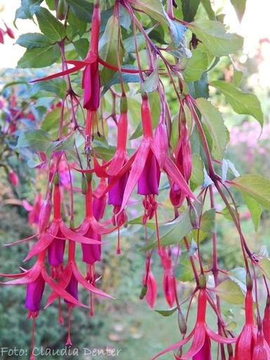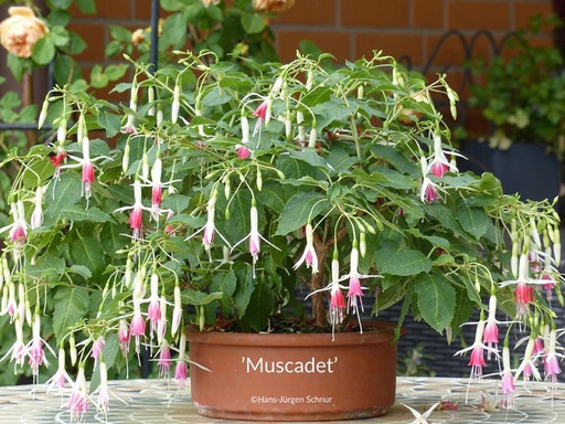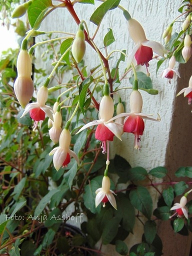 Die Fuchsie 'Whitenight's Pearl' erreicht im Freiland stolze 4 m Umfang.